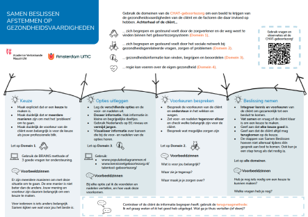 - Een handleiding met daarin beschreven de stappen die gezet moeten worden voor implementatie van gepersonaliseerd Samen Beslissen in de geboortezorg